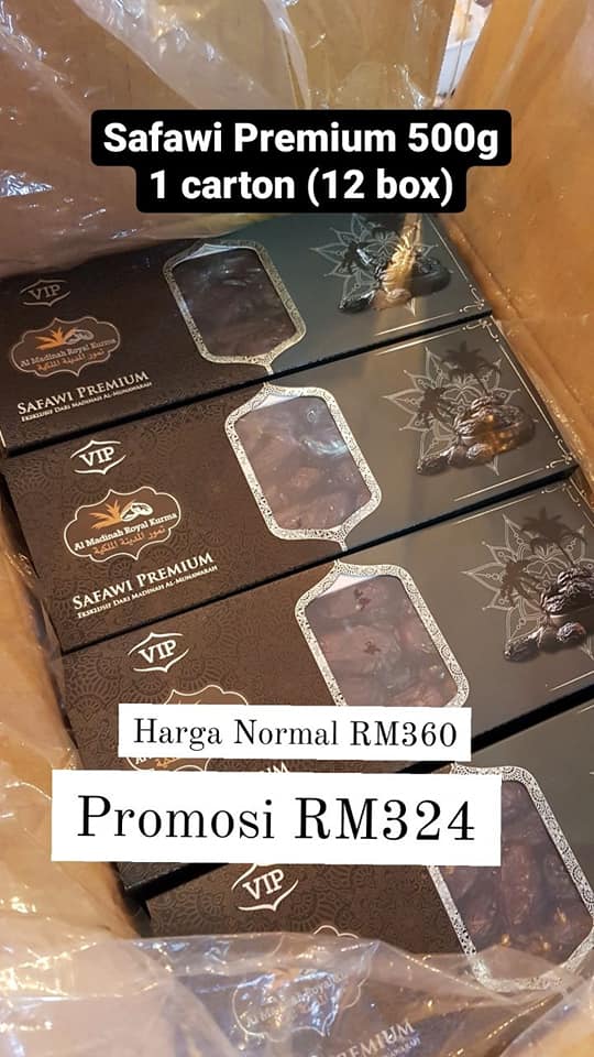 Sama seperti Kurma Mariami Ajwa Aliyah, Kurma Safawi Premium juga mempunyai 5 jenis pilihan kotak yang masing-masing mempunyai berat yang berbeza iaitu 100g berharga RM8, 250g berharga RM20, 500g berharga RM33, 1kg berharga RM55, dan 5kg berharga RM185.
